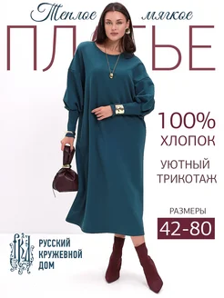 Платье хлопок футер теплый трикотаж осеннее большой размер