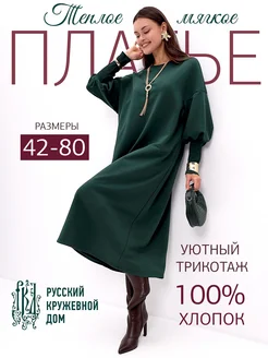 Платье хлопок футер теплое трикотаж осеннее большой размер