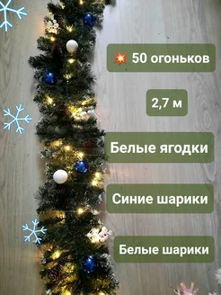 Хвойная гирлянда новогодняя с ягодами и шишками с подсветкой