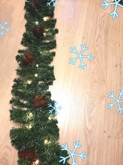 Хвойная гирлянда еловая новогодняя светодиодная с шишками