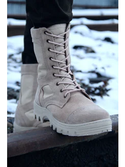 Берцы зимние высокие с натуральным мехом ботинки песочные