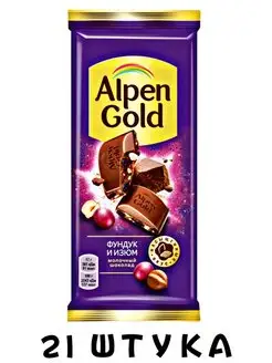 Молочный шоколад Альпен Гольд с фундуком, 21 шт