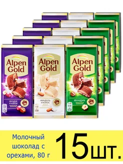 Молочный шоколад Альпен Гольд с орехами, набор 3 вида, 80г