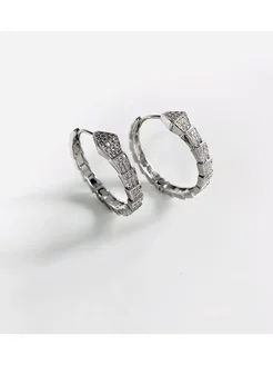Круглые серьги в виде змеи серебристый