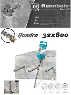 Бур по бетону SDS+ 4 грани 32x600 Quadro