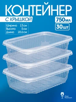 Контейнеры одноразовые с крышкой для еды 750 мл 30 штук