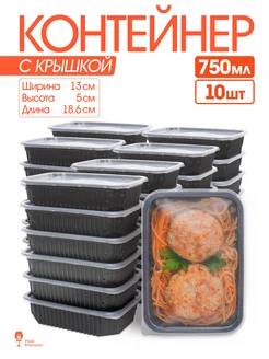 Контейнеры одноразовые с крышкой для еды 750 мл 10 штук