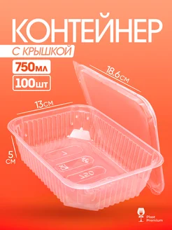 Контейнеры одноразовые с крышкой для еды 750 мл 100 штук
