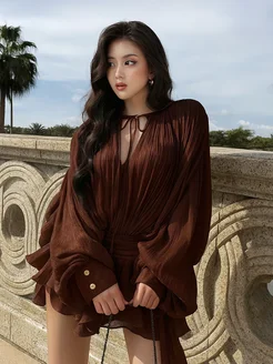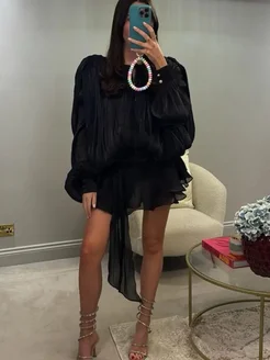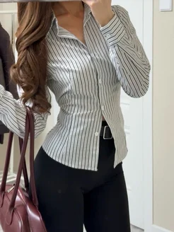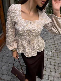 Жаккардовая блузка нарядная с баской и рукавами фонариками