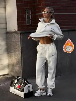 Теплый костюм двойка с джоггерами и свитшотом на молнии