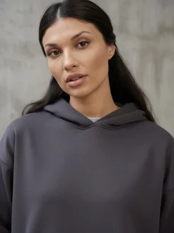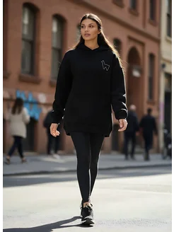 Длинное худи с начесом оверсайз с вышивкой альпака