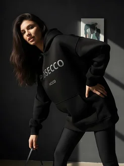 Удлиненное худи с начесом оверсайз с надписью Prosecco mood
