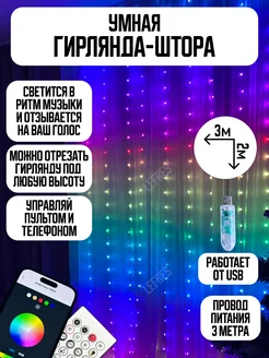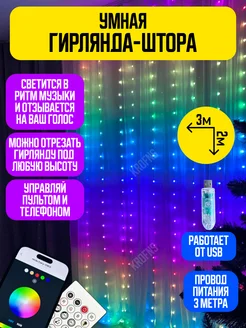 Гирлянда штора роса умная уличная новогодняя на окно 3х2 м
