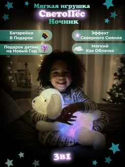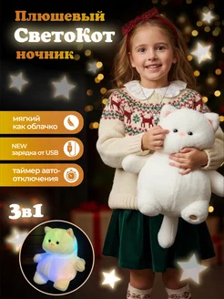 Подарок для девочки Мягкая игрушка Котик Ночник Новогодний