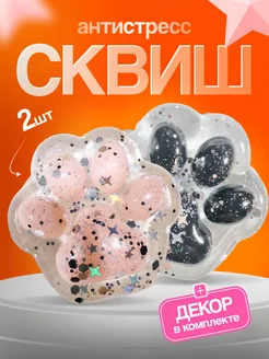 Сквиш лапка котика антистресс таба прозрачная 2 штуки