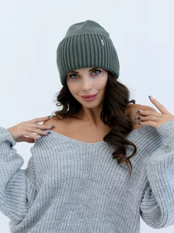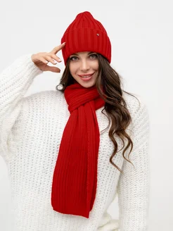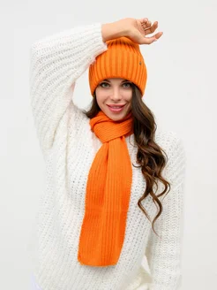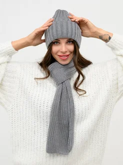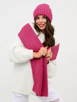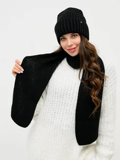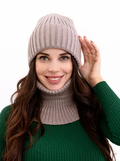 Комплект, шапка вязаная с баффом для женщин и подростков