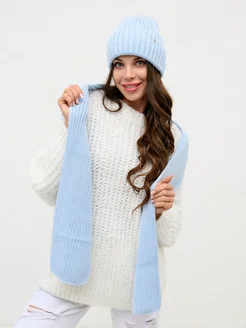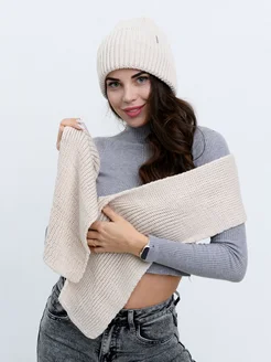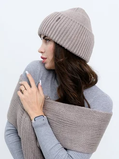 Комплект, шапка вязаная двойная с баффом