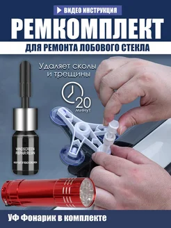 Автомобильный набор для ремонта лобового стекла и уф фонарик
