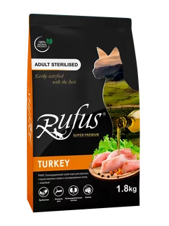 сухой корм Руфус для стерилизованных кошек, Индейка, 1.8 кг