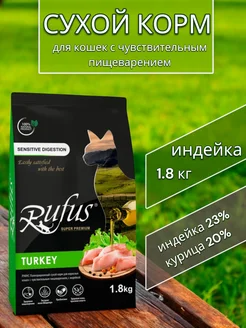 сухой корм Руфус для кошек с чув. пищ, Индейка, 1,8 кг