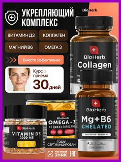 Набор витаминов омега 3, коллаген морской, магний В6, Д3