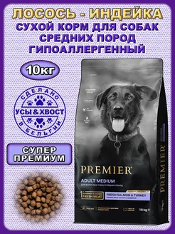 Сухой корм для средних собак. Лосось - Индейка. 10кг
