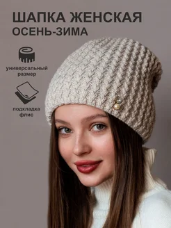 Шапка зимняя вязаная бини осень на флисе