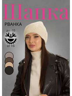 Шапка бини рваная осенняя-весенняя с отворотом лен