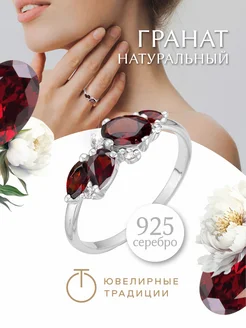Кольцо серебряное 925 пробы с натуральным гранатом