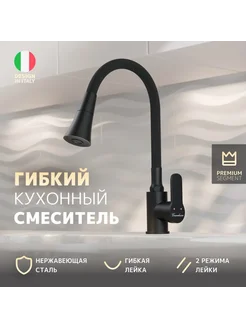 Смеситель для кухни гибкий, Dante SCN24B черный