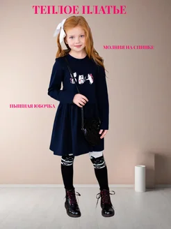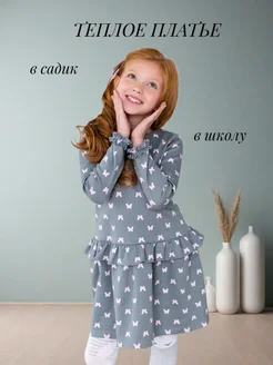 Платье для девочки теплое с длинным рукавом в школу и садик