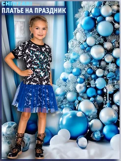 Платье для девочки нарядное трикотажное блестящее новый год