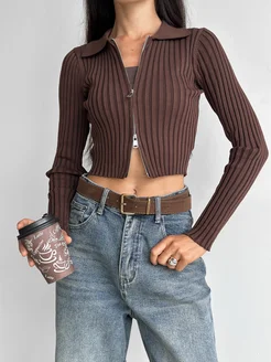 Укороченный лонгслив на пуговицах с длинным рукавом