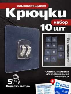Крючки самоклеящиеся, прозрачные для дома (10 шт)