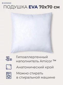 Подушка для сна EVA 70x70х15 см, гипоаллергенный наполнитель