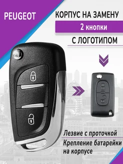 Ключ зажигания для Пежо, Peugeot, с 2 кнопками