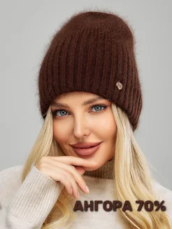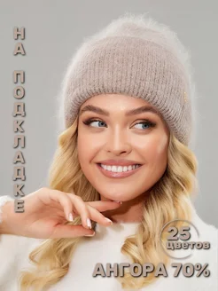 Шапка осенняя тонкая с отворотом вязаная ангора