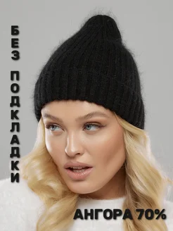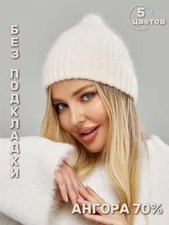 Шапка вязаная тонкая с отворотом без подкладки ангора