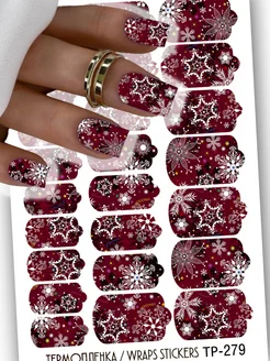 Наклейки пленки для педикюра ногтей Новогодние Снежинки