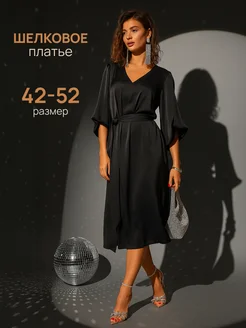Платье миди праздничное с рукавами и поясом