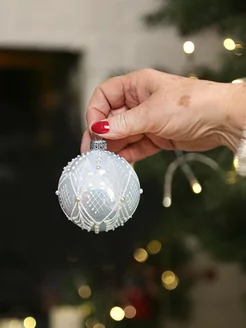 Елочная игрушка шар стекло 80 мм