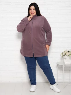 Толстовка на молнии теплая удлиненная флисовая кофта