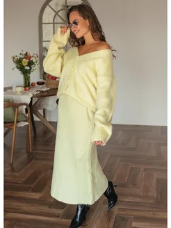 Костюм с юбкой вязаный шерстяной