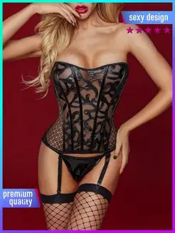 Сексуальное женское белье с корсетом Комплект эротик ажурный