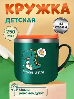 Кружка детская с трубочкой и крышкой подарочная 250 мл