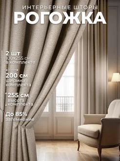 Шторы рогожка в гостиную 250х255 см 2 шт