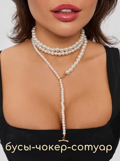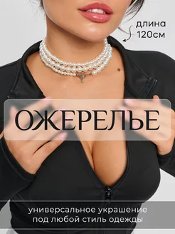 Чокер украшение на шею жемчужное 120см