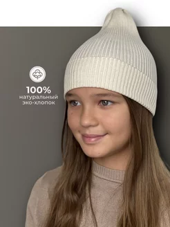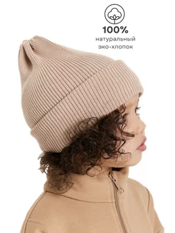 Шапка бини вязаная детская однослойная в рубчик лапша тонкая