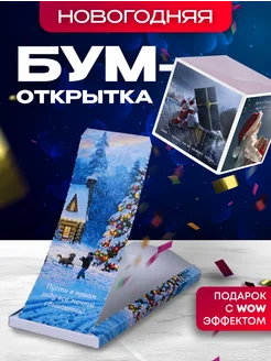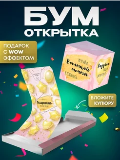 Подарочная бум-открытка для денег белая С Днём Рождения