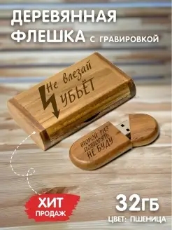 Флешка деревянная подарочная с надписью, гравировкой 32 GB